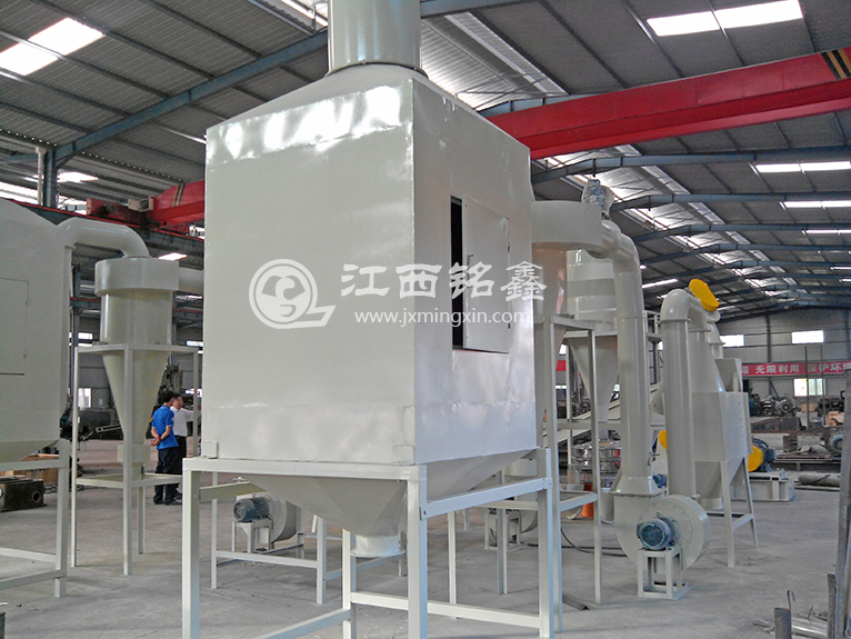 設(shè)備采取了干式破碎、粉碎,使廢舊電路板成為金屬和樹脂纖維末混合物,然后通過高壓靜電分離器將金屬與樹脂等非金屬分離的工藝路線。設(shè)備優(yōu)點(diǎn),噪音小、無需水、無粉塵污染、節(jié)約動力,節(jié)約人力、絕無廢棄物,金屬及非金屬99%充分回收利用。為防止加工過程中的粉塵污染,設(shè)備采用三合一除塵裝置,除塵裝置共有三級除塵:旋風(fēng)除塵、布袋除塵和空氣凈化器除塵,有效地解決了粉塵污染問題,各項(xiàng)指標(biāo)均達(dá)國家標(biāo)準(zhǔn)。